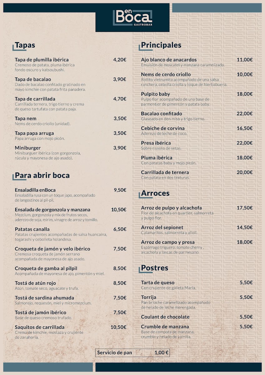 Whether you're sharing tapas or diving into a hearty main, each dish at EnBoca promises a memorable culinary journey. Don't miss your chance to indulge in this exceptional dining experience!
